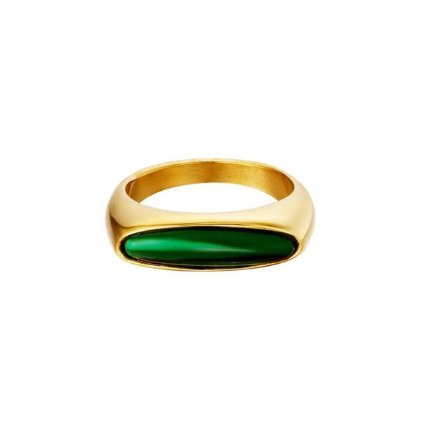 Bague en acier inoxydable avec pierre verte.