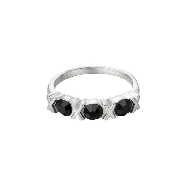 Bague en acier inoxydable en acier doré et argenté avec des pierres de zircon au design XOXO.